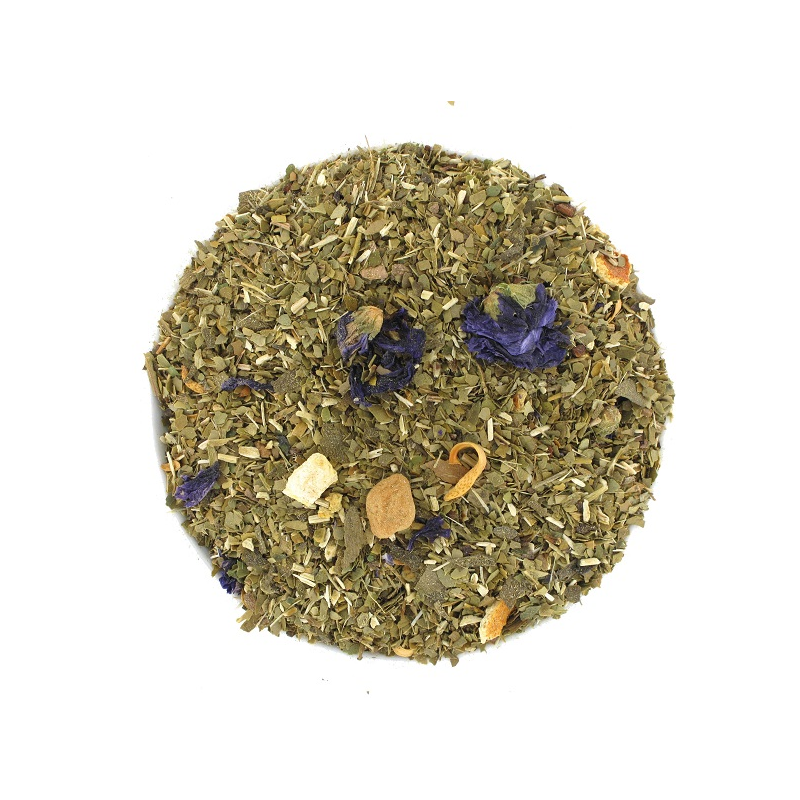 Composition : Maté, ginkgo, guarana, écorces d'orange, goyave, mauve.