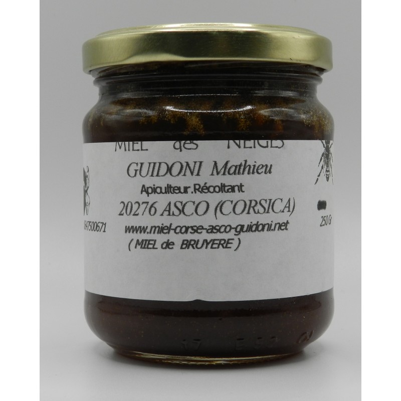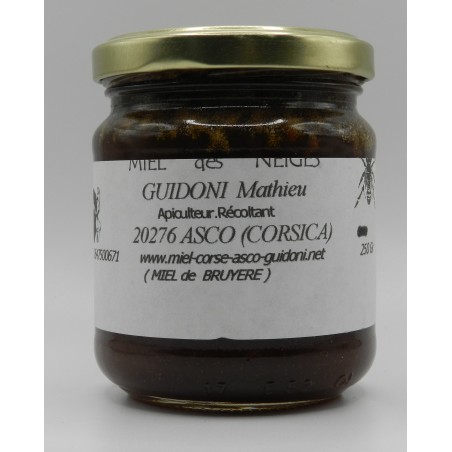 Crémeux et de couleur brun, le miel de bruyère a des notes des sous bois du maquis Corse.
