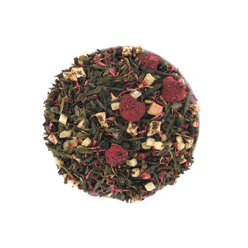Imaginez une garniture crémeuse et sensuelle de gâteau sur laquelle on aurait déposé une rivière de framboises fraîches... le tout sur un très beau thé vert sencha. Après dégustation, c'est sûr ! vous aurez le sourire et le plaisir d'avoir découvert un thé parfait.