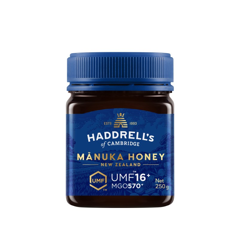Le miel de Manuka Haddrell's of Cambridge® UMF ™ 16+ contient les composés uniques et actifs trouvés dans le miel de Manuka authentique et authentique de l'arbre à thé indigène de la Nouvelle-Zélande.