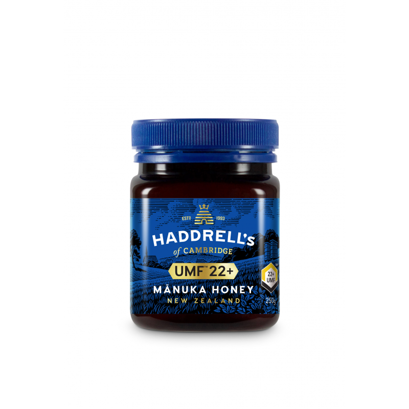 Le miel de Manuka Haddrell's of Cambridge® UMF ™ 22+ contient les composés uniques et actifs trouvés dans le miel de Manuka authentique et authentique de l'arbre à thé indigène de la Nouvelle-Zélande.